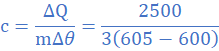 (5)When molten lead metal of mass 3 Kg and temperature 605 K is left to solidify, it is found that the temperature falls from 605 K to 600 K in 10s, remains constant at 600 K for a further 300 s before dropping to 595 K in 8.4 s. Assuming a constant heat loss and taking the specific heat capacity of solid lead as 140 J/kgK, find: